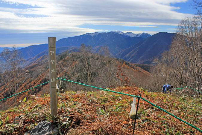 | 午前9時40分にアンテナピークに到着。少し休憩します。 遠くに見えるのは経ヶ岳かな。 |