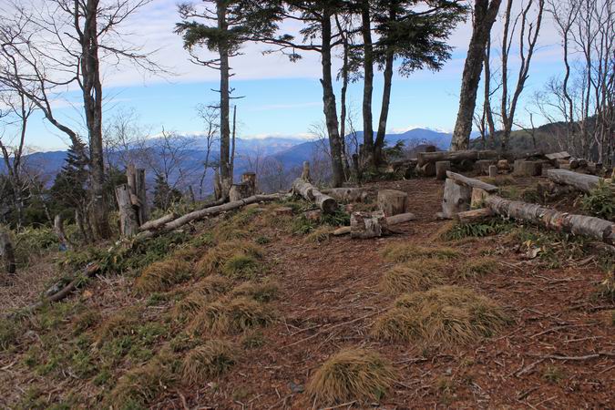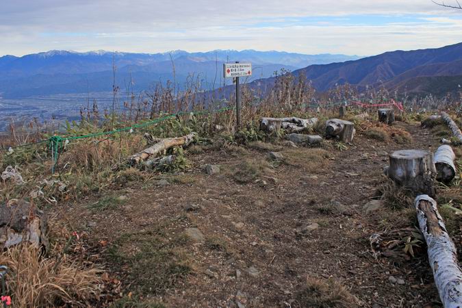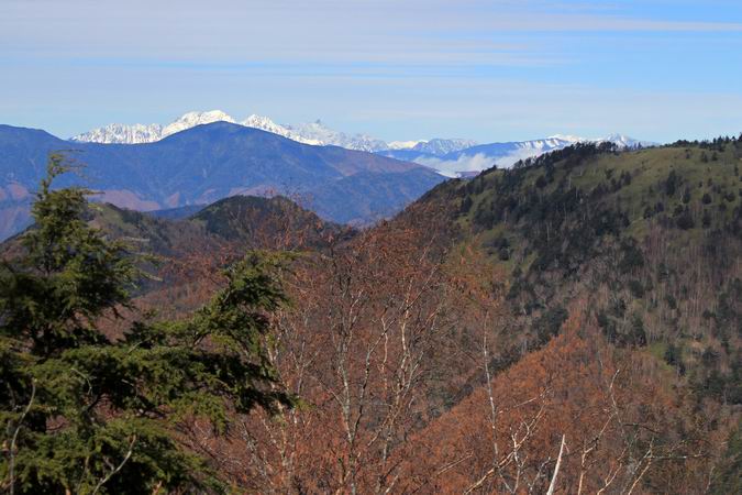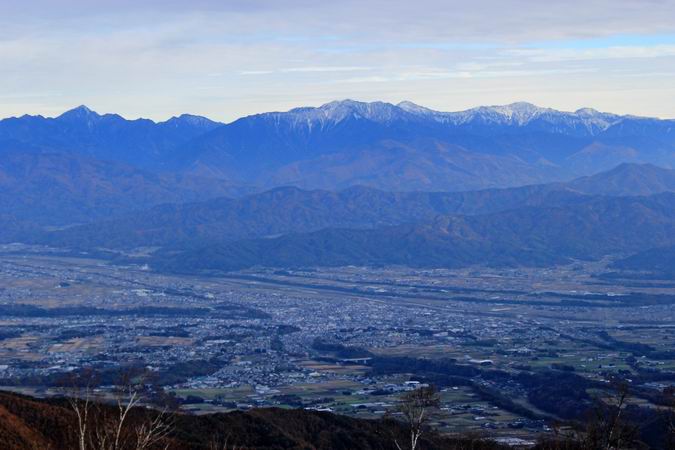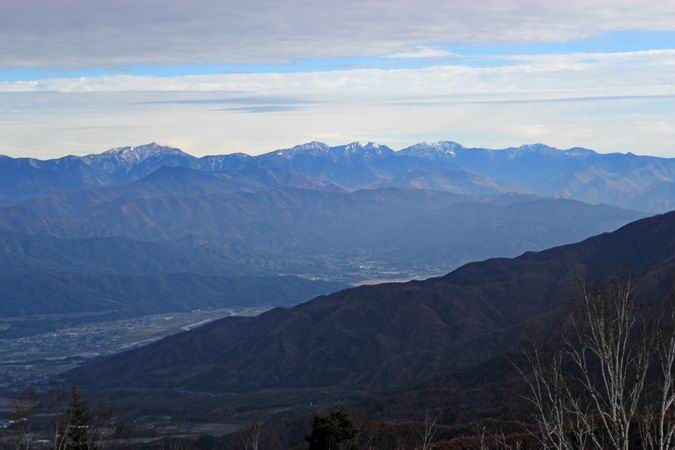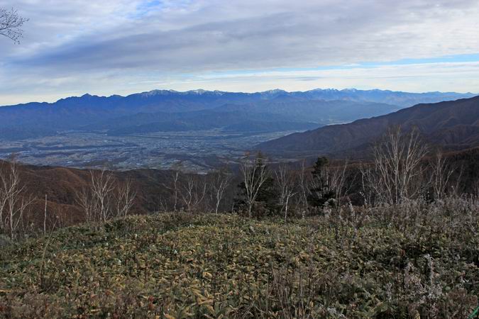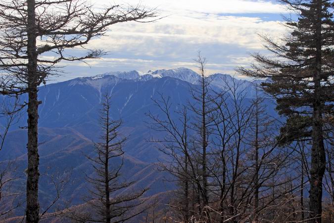 | 木々の間から南アルプスと伊那谷が見えます。 |