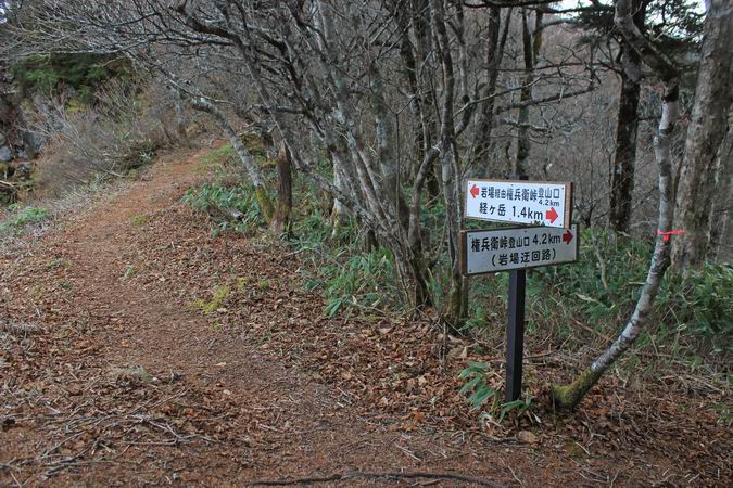 | 下り立ったところで道は岩場ルートと迂回路に分かれる。 岩場ルートには展望地があるようなのでそちらを行くことに。 |