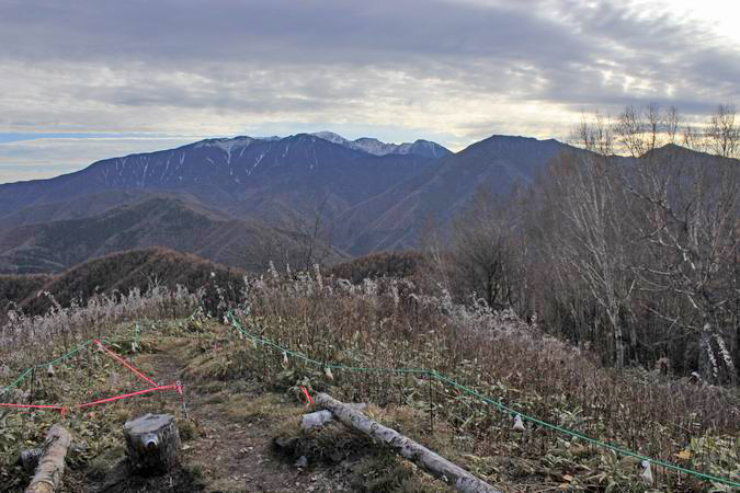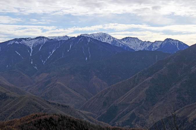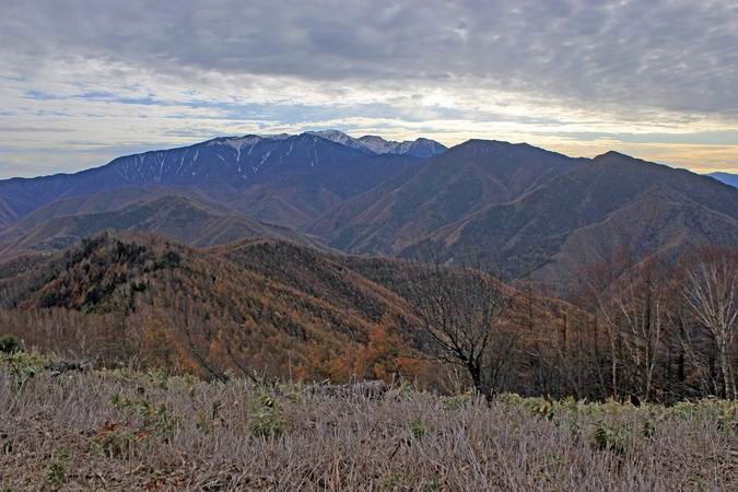 | 振り返れば中央アルプス。中央右に茶臼山、左に将棊頭山。 |