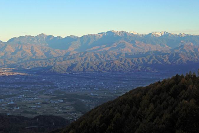 | 里見平からの南アルプスと夕暮れの伊那谷 |