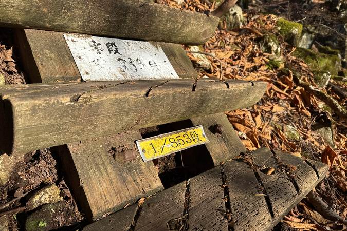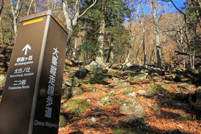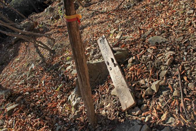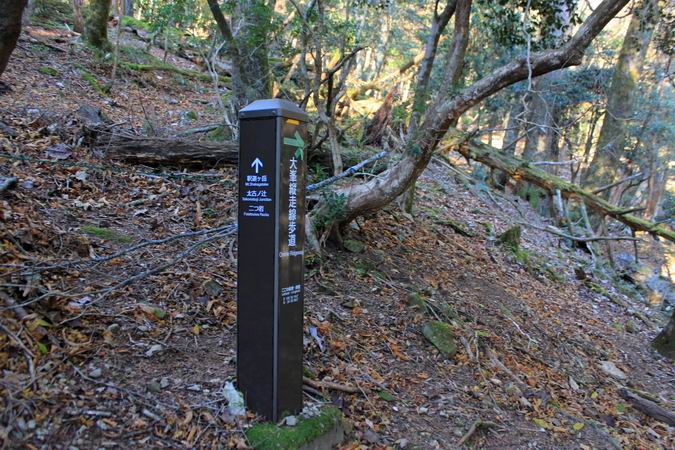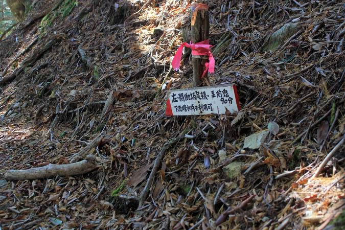 | さらに進んで行くと、奥駈道でよく見かける道標があった。 |