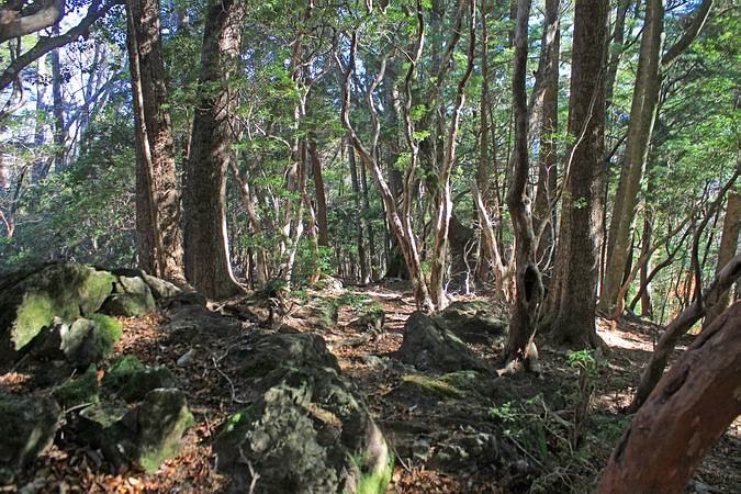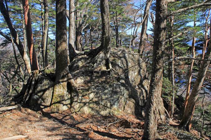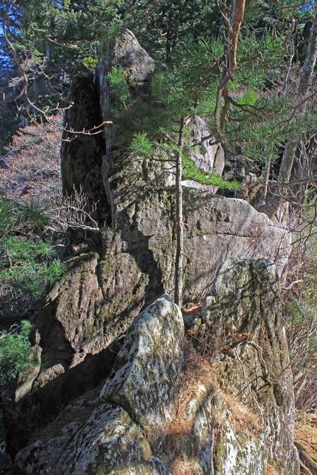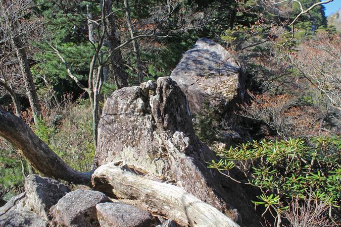 | P1185付近には大岩が多い。岩に生える木々の逞しい生命力。 |