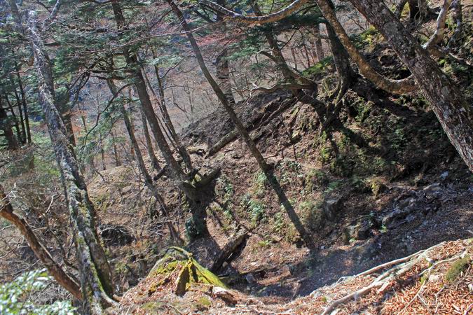 | 閼伽坂尾根の下降口です。覗き込んでみると・・・ |