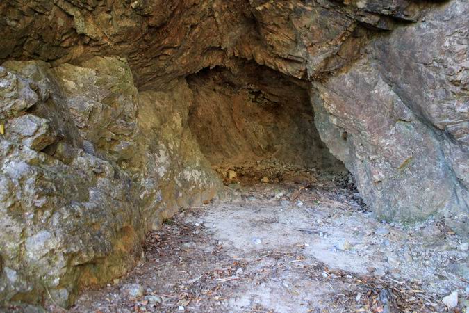 | 滝壺の近くに窟がありました。かつてはここで修行した修験者もいたのでしょうか。 |