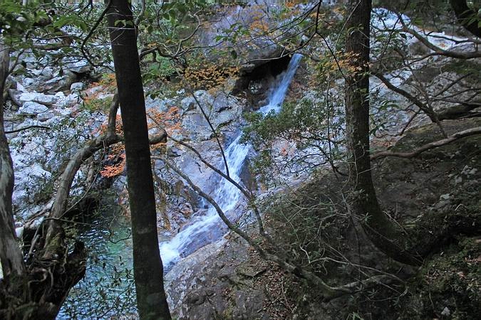 | 滝の近くまで下りてきました。眼下に不動滝の落口が見えます。 |