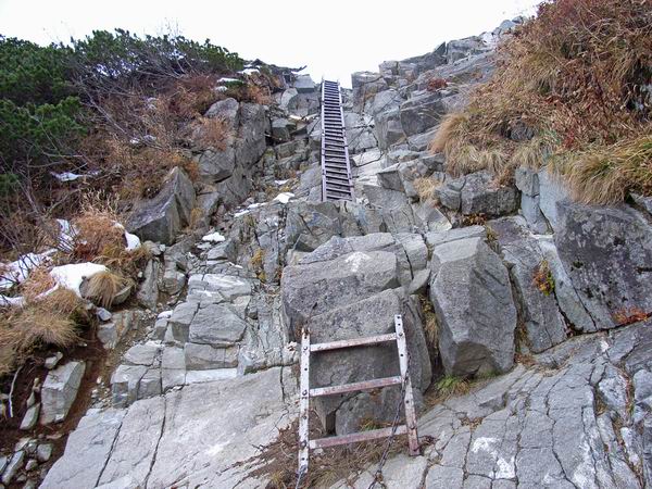 凍える手でクサリを掴み、続いて現れた梯子を登って南稜に出た時はかなり疲れも出てきた。