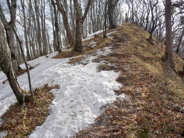 | 東側には目の前に桧塚が春の残雪期のような姿を見せていた。 |