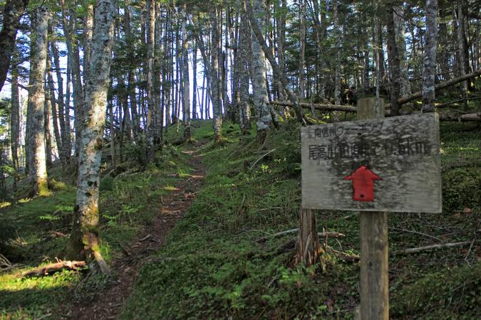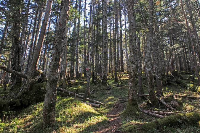 | 奥尾高山から50mほど急降下したところ。 奥尾高山から先はさらに奥深い山の中という雰囲気がしてくる。 |
