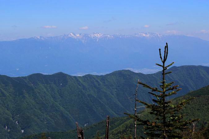 | 光岳、加加森山、池口岳、中ノ尾根山などの南アルプス最南部の眺めがあった。 |