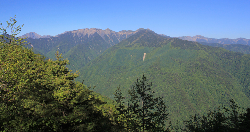 | 下る途中から見た光岳以南の山々。登りでは気がつかなかった眺め。 |