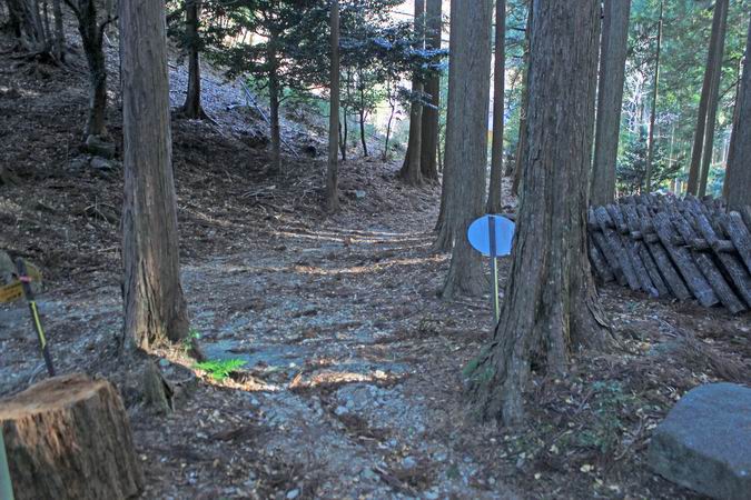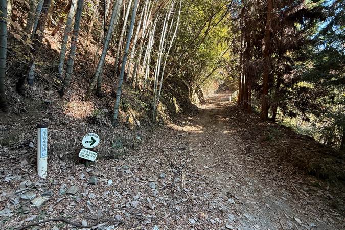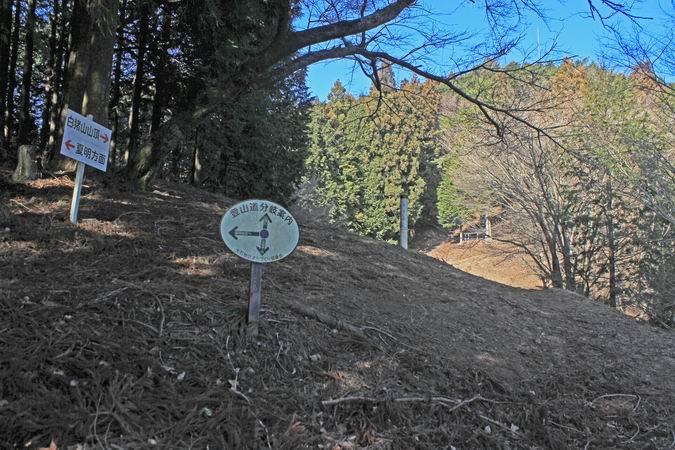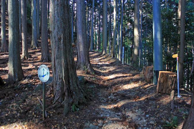 | 11時55分に大城コース分岐。峠のようなところです。 ここで右折して登山道に入って行きます。 |