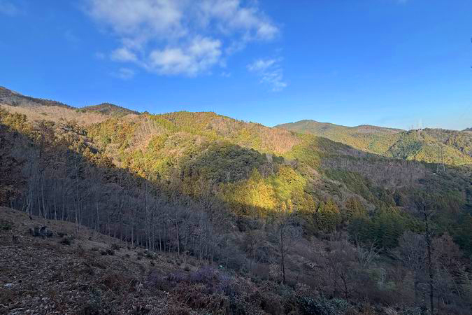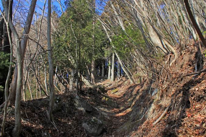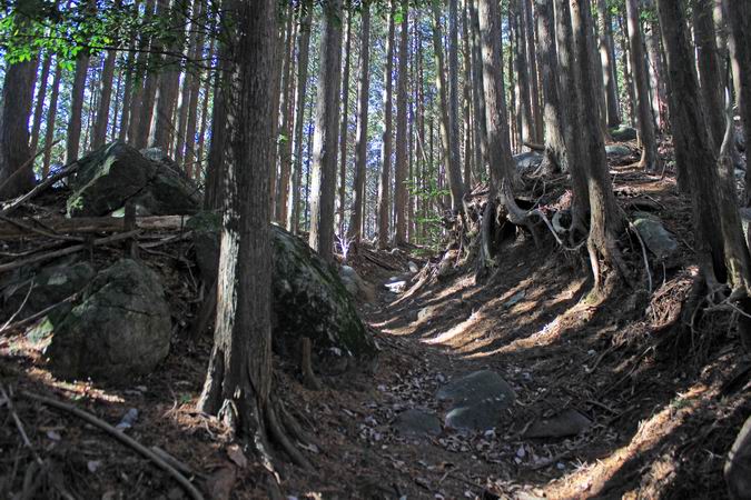 | 二ノ峰近くになると樹相が変わり頭上が明るくなる。 |
