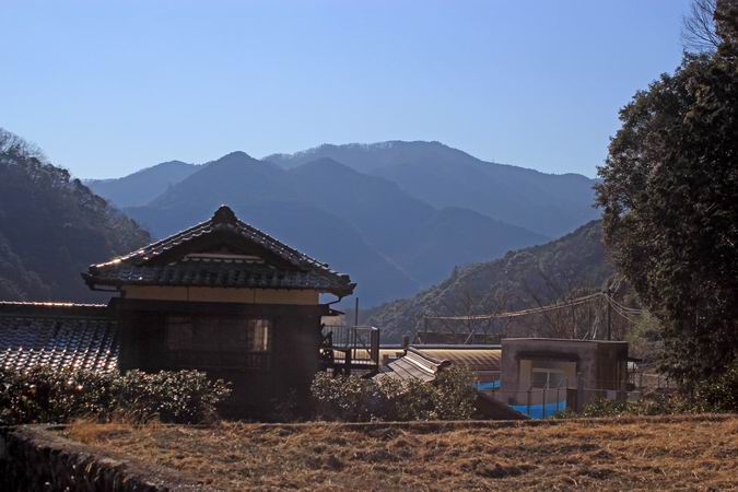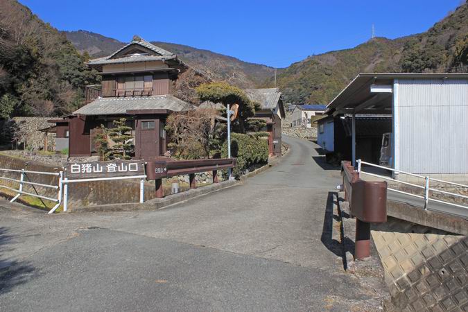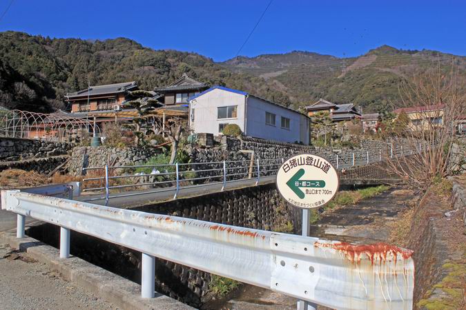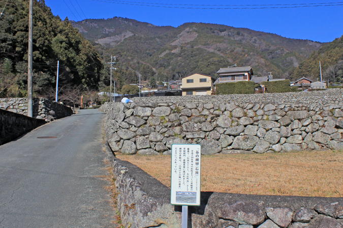 | 谷の棚田の案内板がありました。正面の山は目指す白猪山と思います。 |