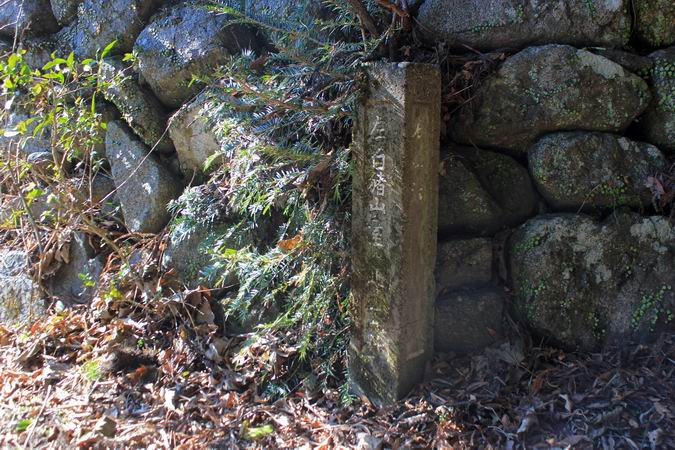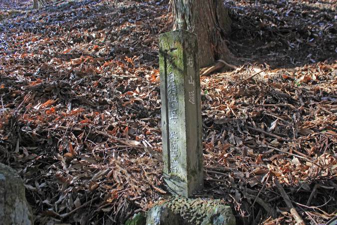 | 歴史を感じる道標。左は白猪山だが右はどこへ行くのだろう。 |