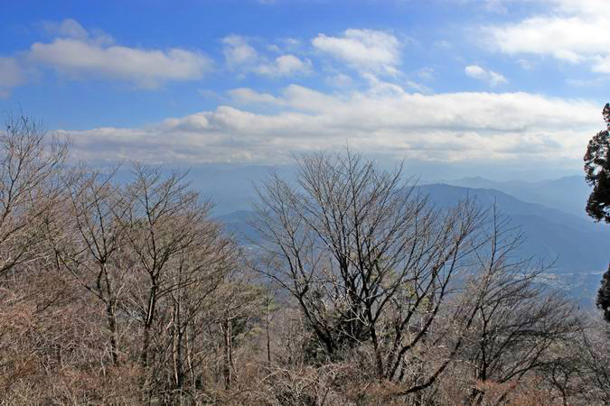 | 二ノ峰からは南側の展望が開けていますが、、遠くは霞んでいてよく見えません。 右手前は烏岳だと思います。 |