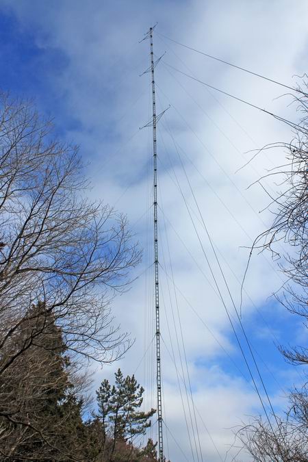 | 少し休んでから午後1時55分に下山を始めます。 下る途中でアンテナのようなものが見えました。 |